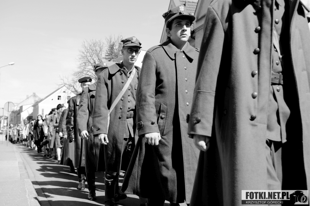 Zdjęcia z IV Marszu Katyńskiego - Przemarsz ulicami Wolsztyna, Msza Święta - Kościół Fay, odjazd jeńców z dworca na Bielnik, zakończenie inscenizacji.