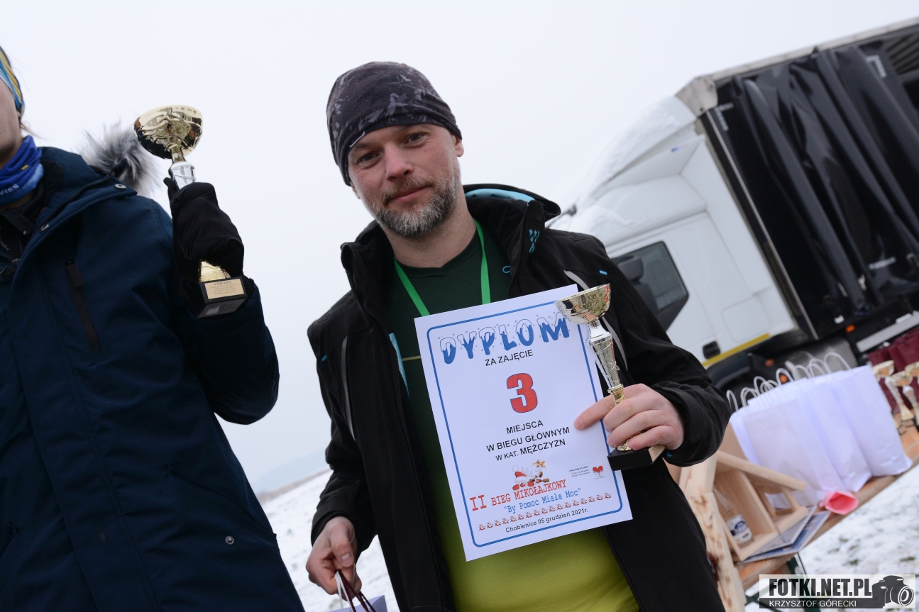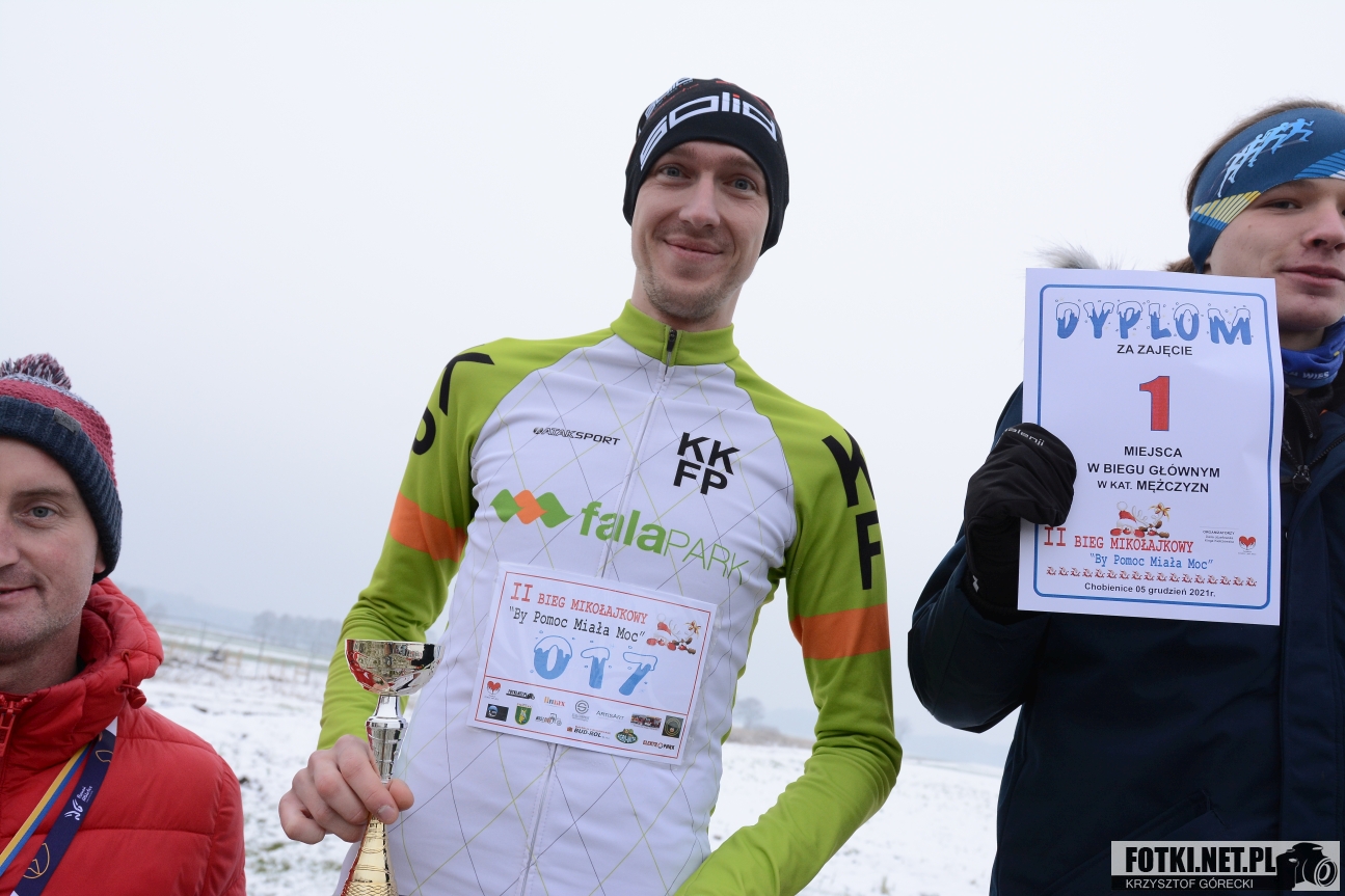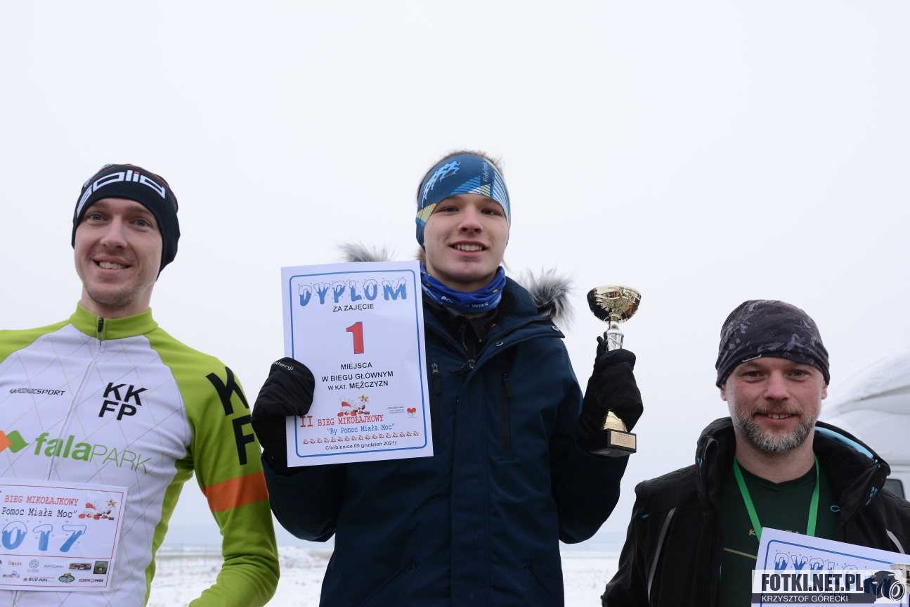 Zdjęcia z wydarzenia "Bieg Mikołajkowy By Pomoc Miała Moc", które odbyło się w niedzielę 5.12.2021 w Chobienicach gmina Siedlec.