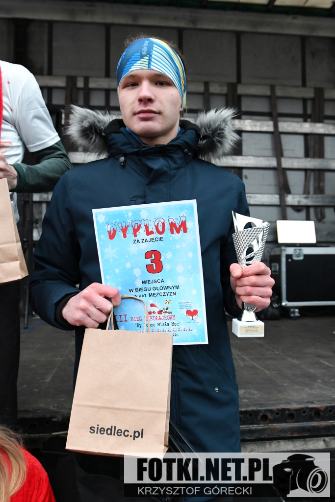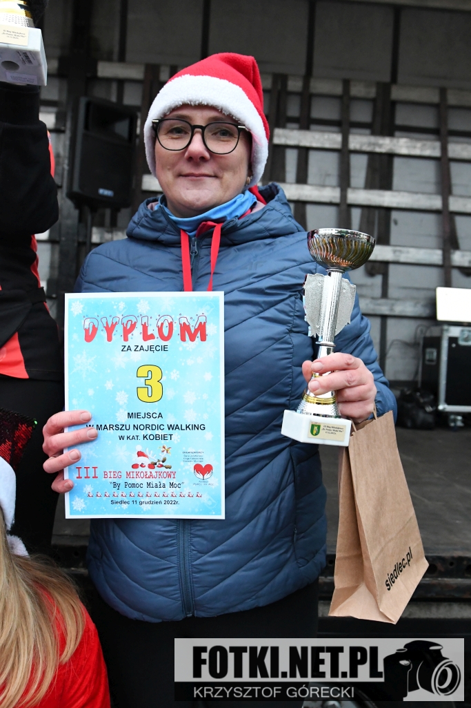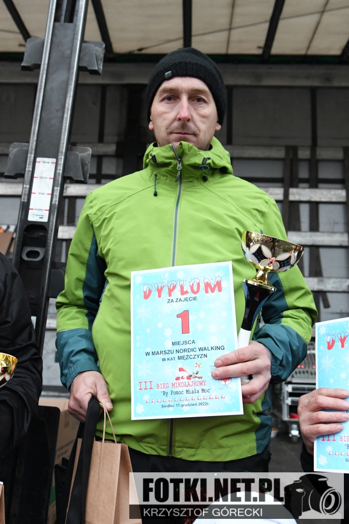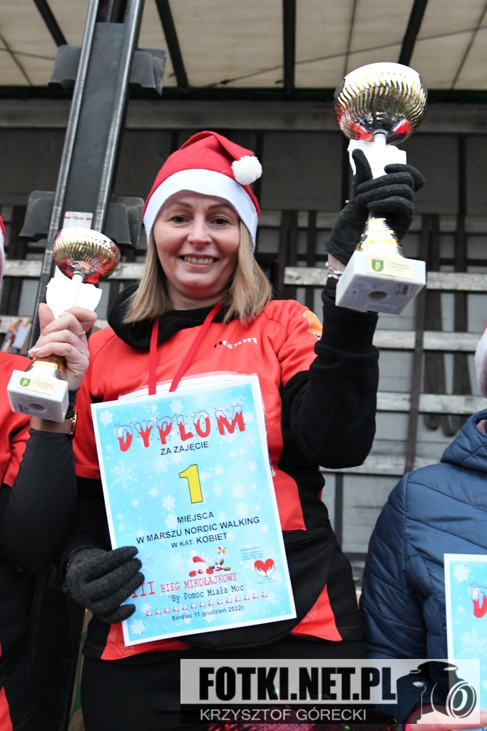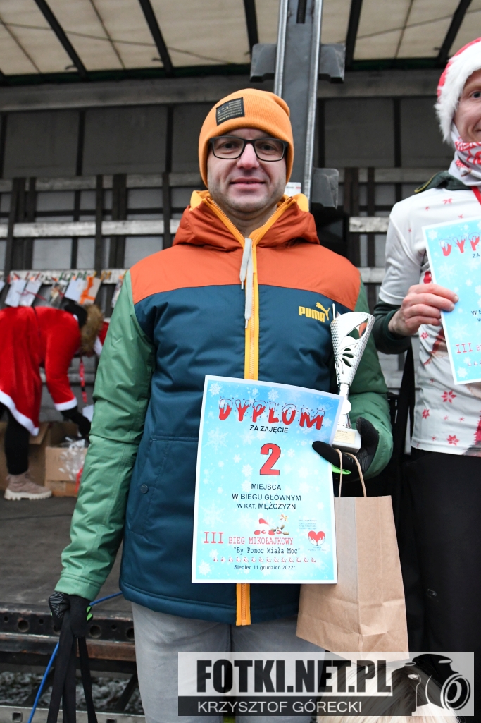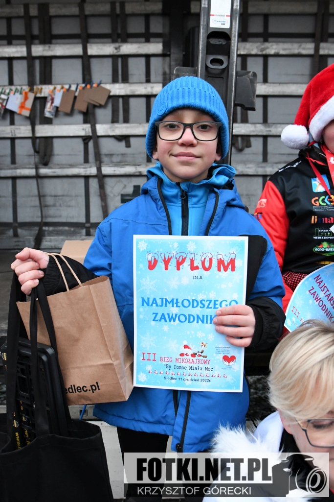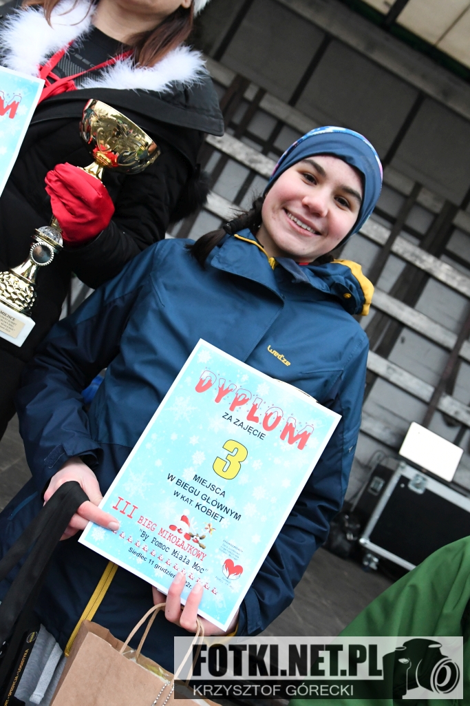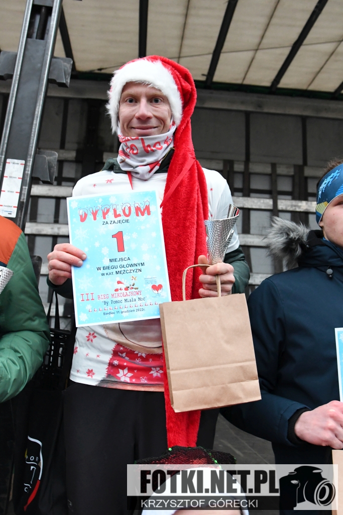 Zdjęcia z wydarzenia III Bieg Mikołajkowy "By Pomoc Miała Moc", który odbył się w Siedlcu. Odbyły się biegi dla dzieci i młodzieży, bieg główny na 5km oraz marsz nordic walking.