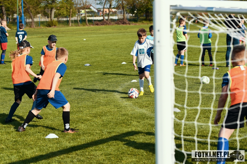 Zdjęcia z tuieju piłkarskiego najmłodszych piłkarzy "Żak", który odbył się w Kębłowie 10.05.2023 r. W tuieju udział wzięły 3 kluby: Orkan Chorzemin, Grom Wolsztyn oraz Dąb Kębłowo.